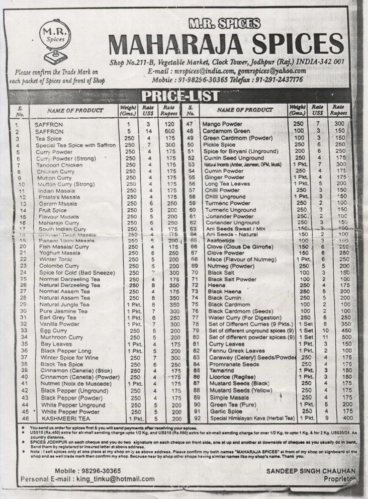 List of Indian Spices Wikipedia Entry