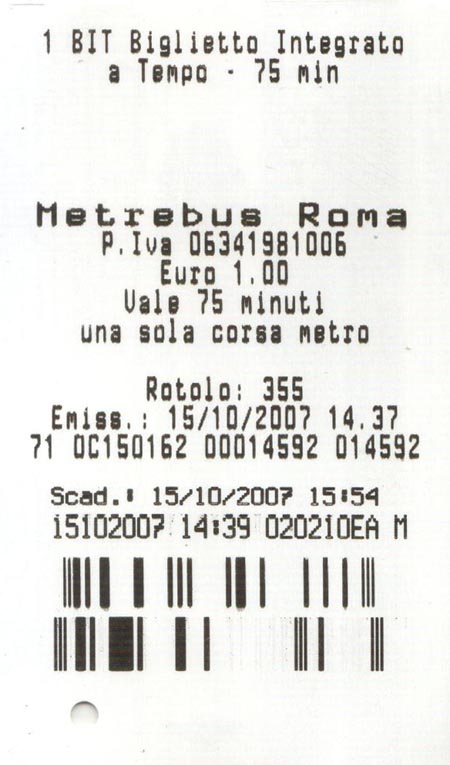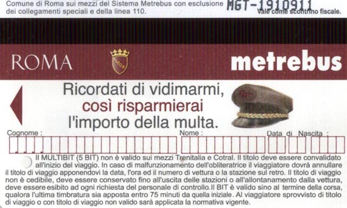 Ticket, Rome Metro (MetroRoma), Rome, Lazio, Italy