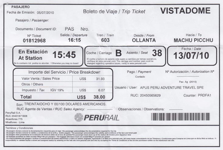Back to Perurail Main Page