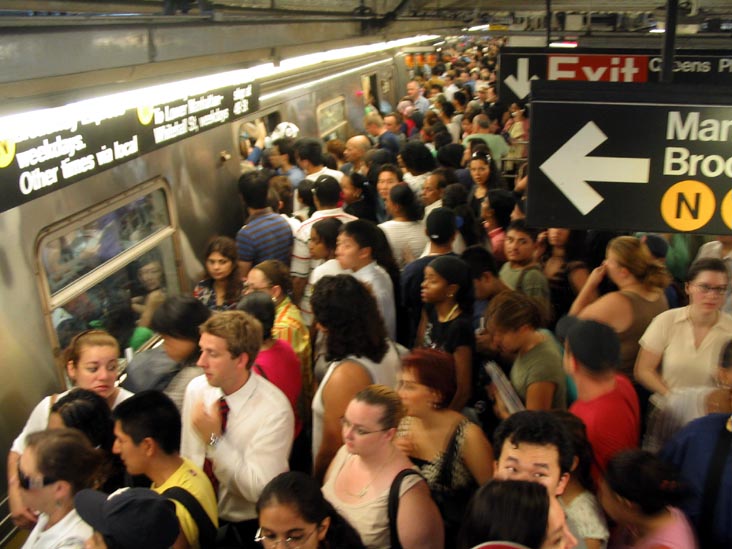 Commuters Try To Board A Manhattan-Bound N Train YouTube Video