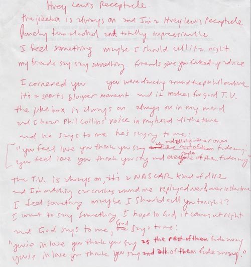 The jukebox is always on and I'm a Huey Lewis receptacle, lonely from