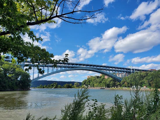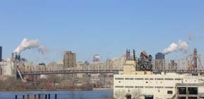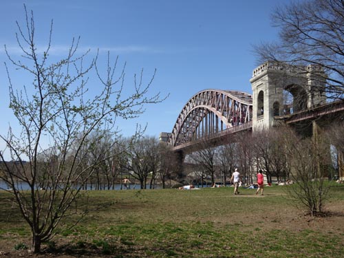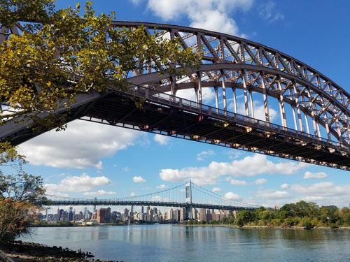 Hell Gate Bridge and Triboro Bridge From East River Shorefront, Astoria,